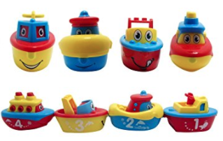 These fun and educational bathtub boats offer a fun new way to learn about colors and numbers. They help kids work on motor skills. Recommended for toddler 18 months and up.