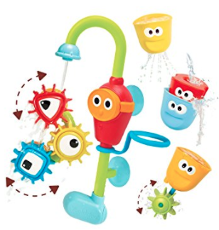 This bath spout easily attaches to the side of your bath tub.There are 3 interchangeable cups that work with the spout to create different water effects for spraying, straining and floating. This toy is recommended For Children Ages 9-36 Months